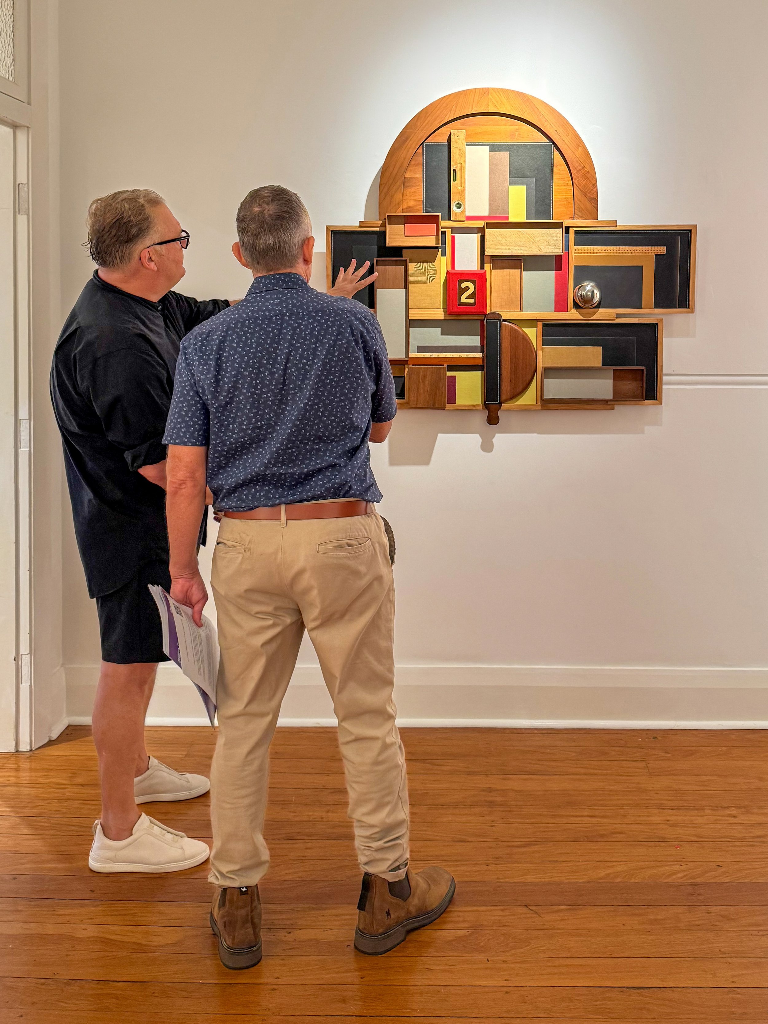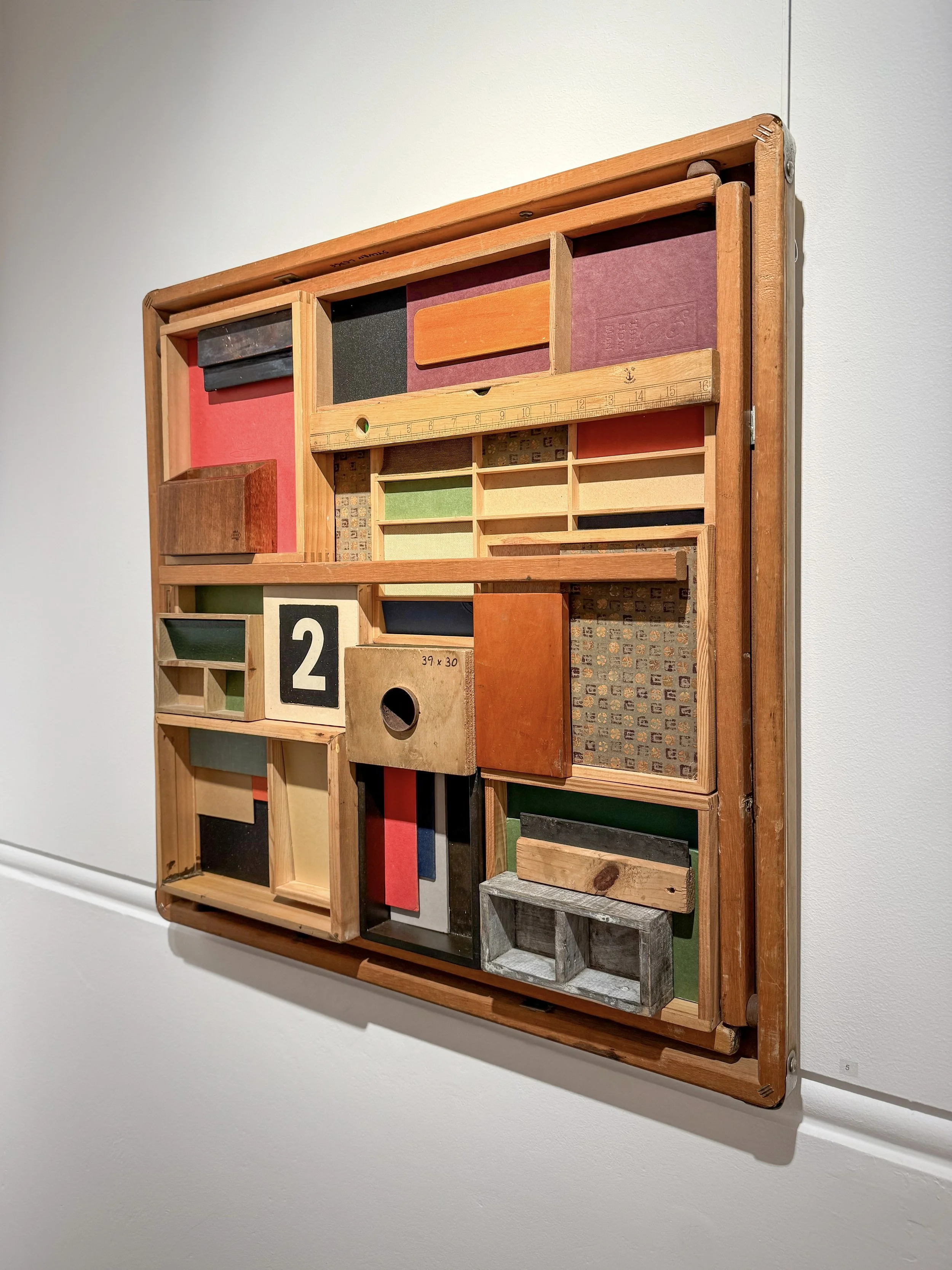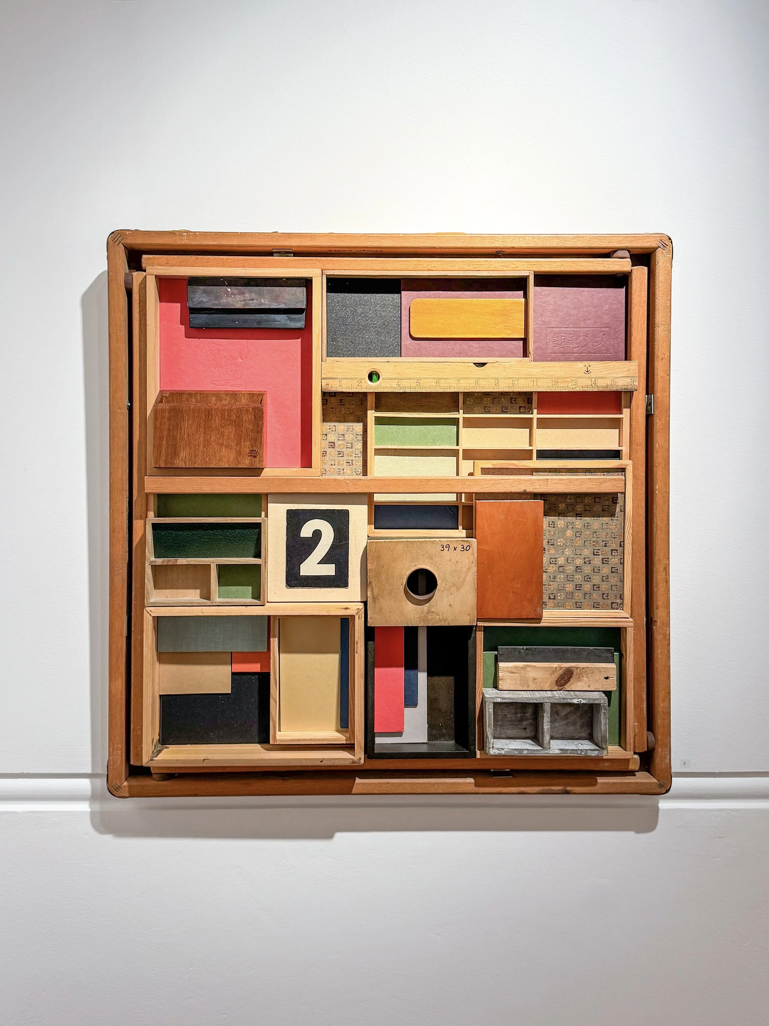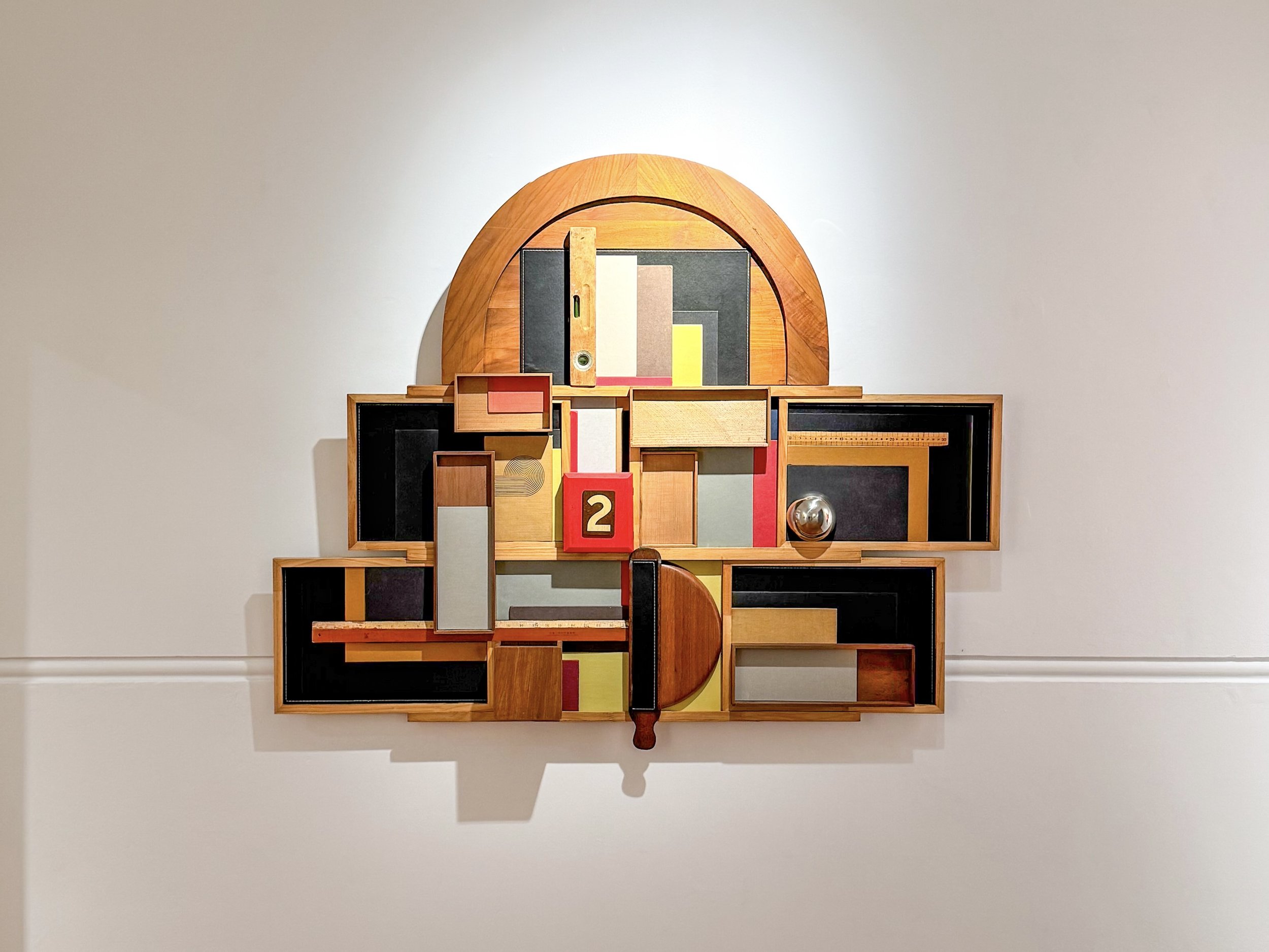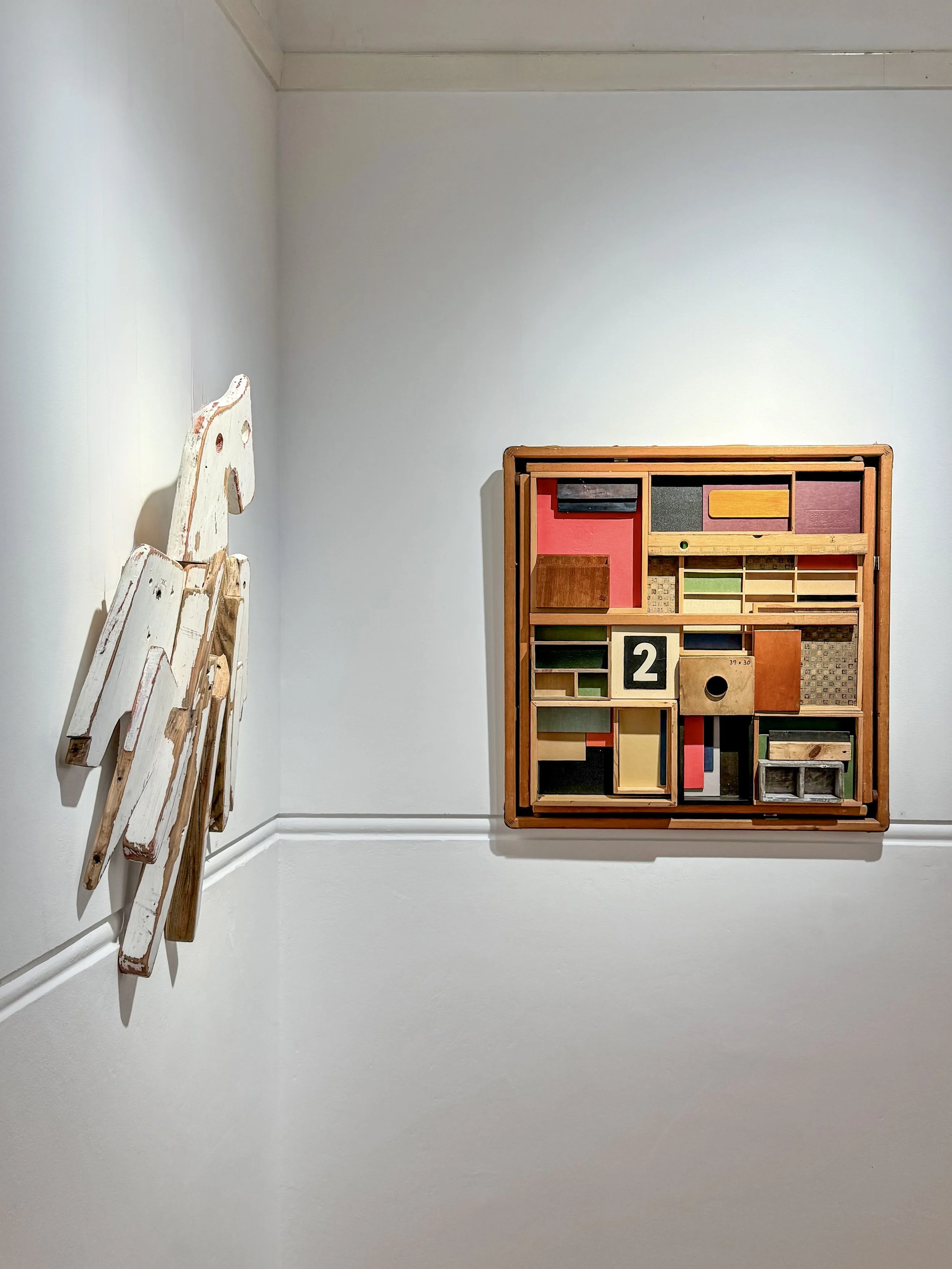In other works, I use salvaged timber, painted fragments and domestic remnants to construct tightly balanced, wall-based assemblages.